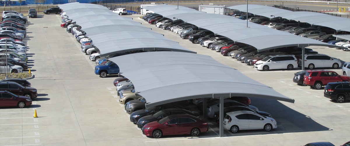 When Toyota relocated their North American headquarters from Southern California to Plano TX, they needed shade and hail protection for the open lot used for their employee lease vehicles. VPS covered over 300 of those spaces with the second iteration of our Panorama Series Cantilever structure.